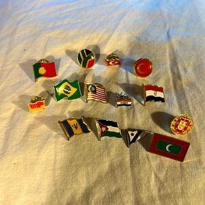 Fourteen Flags Around the World Pins From Great Grandfather’s World Cruise