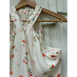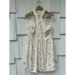 Fourteenth Place Ditsy Floral Halter Dress Cream Sleeveless Pleated Skater Sz M
