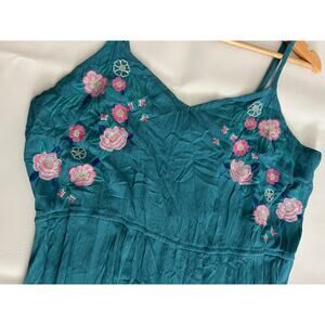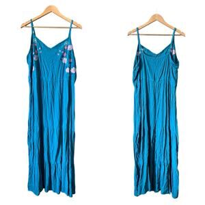 Fourteenth Place Embroidered Floral Teal Green Blue Maxi Dress 3X Boho Coquette
