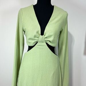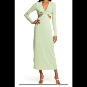 Fourteenth Place Sol Side Cut Out Long Sleeve Midi- Maxi Dress Size M Green NWOT