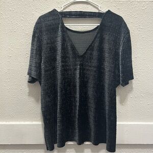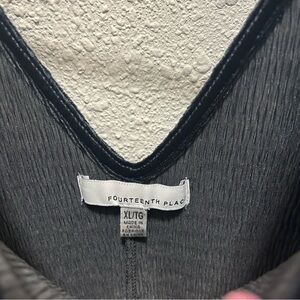 Fourteenth Place Textured Velvet Cutout Back Blouse XL Black/Grey