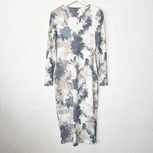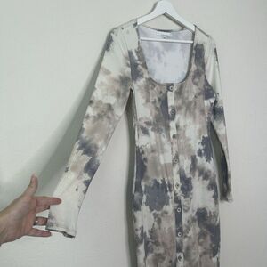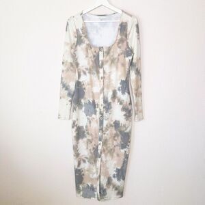 Fourteenth Place Tie Dye Long Sleeve Button Down Ribbed Midi Dress S