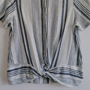 Fourteenth Place Women's Blue Striped Twist Front Shirt Size S/P