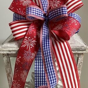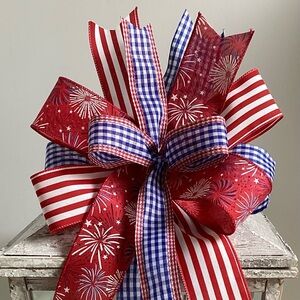 Fourth Of July Bow, Wreath Bow, Wreath Accent, Lantern Bow, Fireworks & Stripes.
