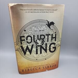 Fourth Wing By Rebecca Yarros 1st Edition Hardcover Dustjacket Acceptable. The dustjacket shows wear and there is a big scratch on the front. Pages and binding are good except one page which was bent when I acquired the book. Overall acceptable, highly readable and a modern classic. Ships quickly and securely.
