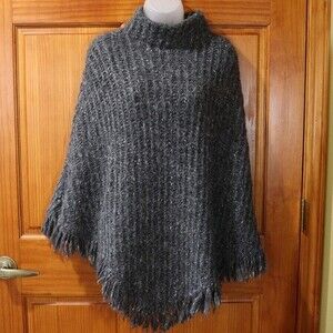 Fownes Gray Ribbed Knit Poncho Blanket Sweater OS