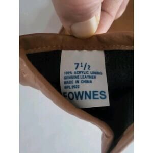 These are vintage Fownes brown leather driving gloves for women, size 7.5. They are lined with acrylic for warmth, making them suitable for winter and fall. The gloves have a preppy and retro style, perfect for travel, casual outings, or business settings. They feature a lined interior, ideal for driving in colder weather.