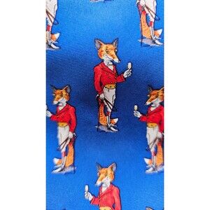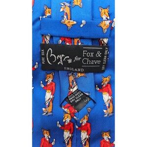 The Fox & Chave Bryn Parry Collaboration 100% Silk Fox Tie is a designer accessory crafted in England. Made of luxurious silk fabric, this tie features a unique Bryn Parry designed fox pattern in a classic blue color. The Fox brand logo accents the design, making it a stylish and sophisticated choice for men who appreciate fine quality and attention to detail. The adjustable one-size design, paired with the classic width, ensures a perfect fit for any formal occasion.