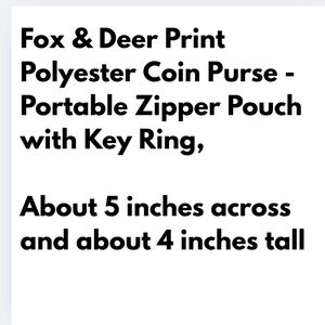 Fox & Deer Print Polyester Coin Purse - Portable Zipper Pouch with Key Ring,