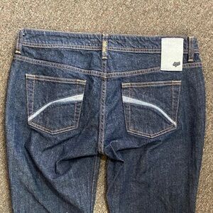 Stylish indigo jeans with wide leg design. Perfect for everyday style. Waist 34” Inseam 33 1/2” Rise 8” Bell 11”