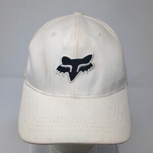 Fox Fitted Hat White Large Embroidered Logo 6 Panel Vent Holes Outdoor