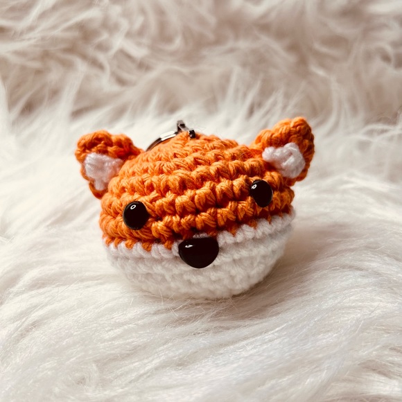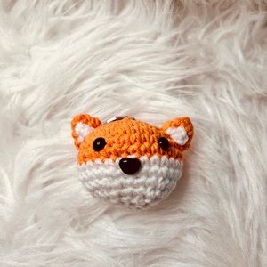 Hand crocheted fox Keychain. Made with cotton yarn and safety eyes. Has split Keyring attached to head. Measures about 2 inches