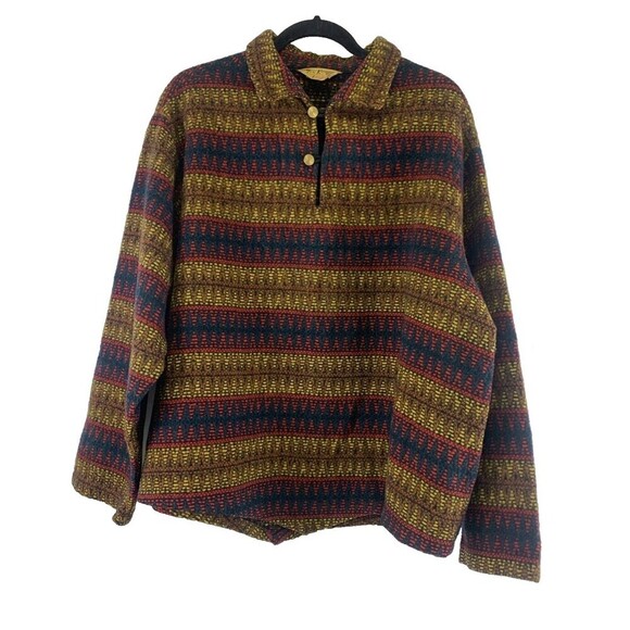 Fox Knapp Sportswear Wool Collared Pullover Two Button Point Hem Red Womens XL