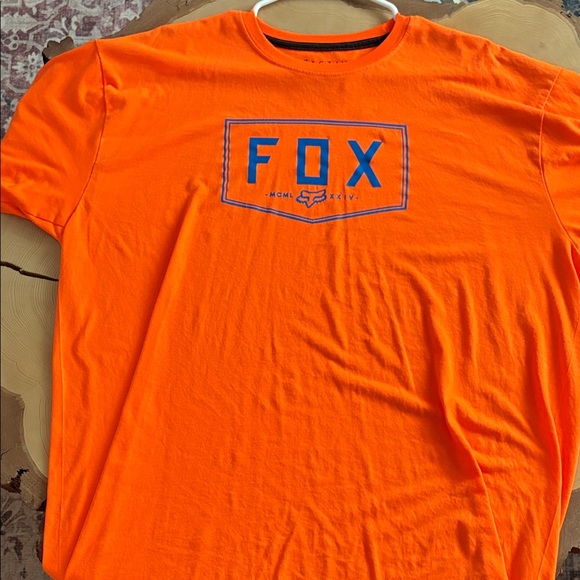 Stand out with this bold orange Fox tee. Features a striking blue logo. Ideal for casual wear.