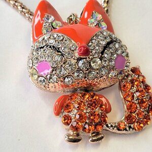 Fox Pendant Necklace Orange Animal Pendant Long Necklace Orange Crystal Pendants