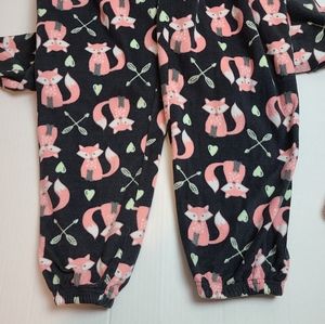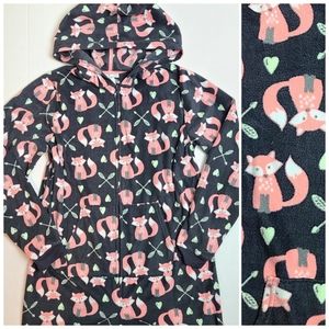 Cute fox and arrow print onesie pajamas with hood, front pockets, and zipper front. Women's size medium. Excellent condition, just one teeny tiny hole where legs meet, see pic seven. Super soft fleece knit. Open feet