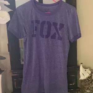 Heather purple Fox t-shirt with large logo on front. Short sleeve crew neck style. Casual, easy-to-wear design.