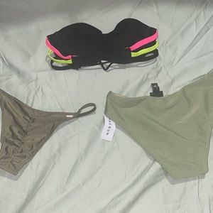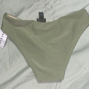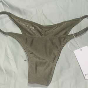 FOX swim bottoms size medium with ruched seam NWT and sanitary strip still on them, extra cheeky