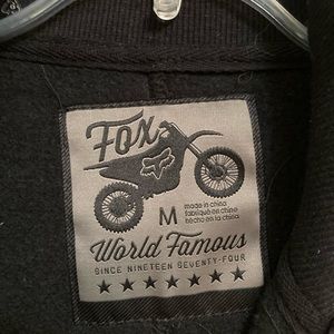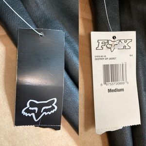 New with tags. Color: black. Fox Racing Destroy Full Zip Jacket size M. Combined Moto inspired style with quality construction to create a great fitting jacket this season. Black polyurethane sleeves, neck, and welt pockets. Exposed zipper at CF with logo zipper pull. Logo riveted at pocket. Cotton/polyester fleece/polyurethane.