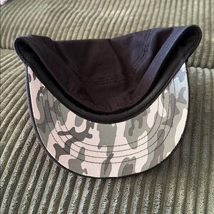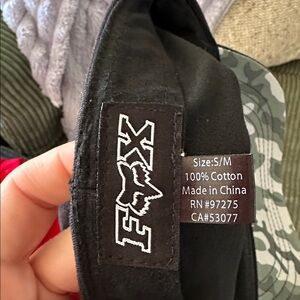 Military-style hat, size S/M. All black hat with fox emblem on front/side with camo design under bill. Worn once, in excellent condition.