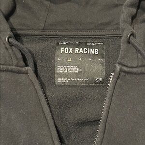 Fox Racing black and gray zip up. Has a few stains that are shown in the photos!