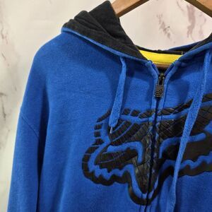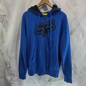Fox Racing Hoodie Mens Large Blue Black Cotton Sweatshirt Jacket Full Zip