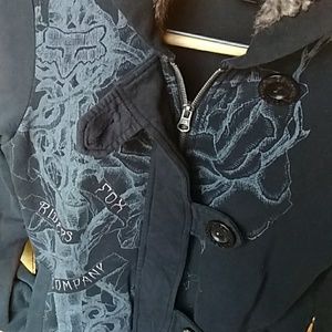 Black, double layered, fluffy hood. Excellent used condition. Zips and buttons.