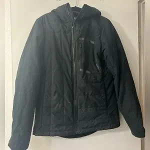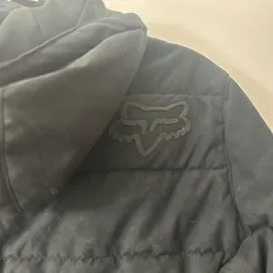 Black hooded Fox Racing jacket. Good condition. Will be cleaned prior to shipping. Would fit thin teenage boy.