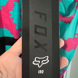 Vibrant Fox Racing jersey with a bold design. Features pink, teal, and black colors. Mens. Brand New with Tags.
