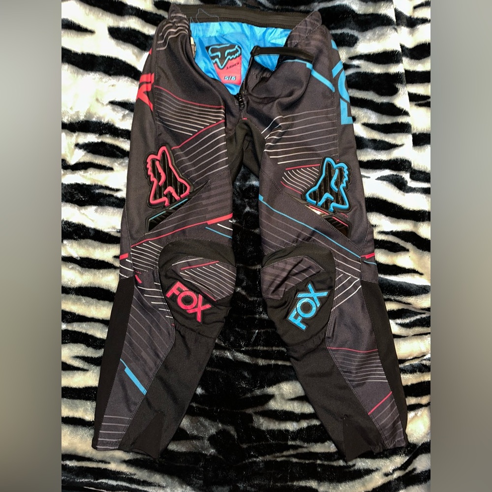 Fox 180 Racing Pants - size 5/6 - black with turquoise, pink and silver detail - excellent used condition, only worn 3 times, like brand new - no holes, tears, or scuffs