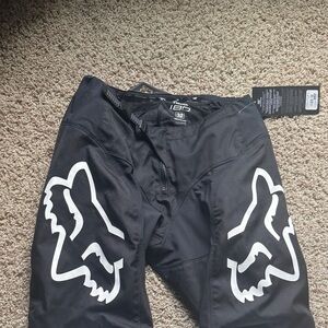 Fox Racing pants in black with white logo accents. Stylish and durable. New with Tags. Size 32.