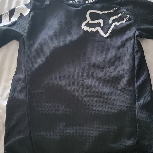 Fox Racing jersey in black with bold white logo. Ideal for active wear.