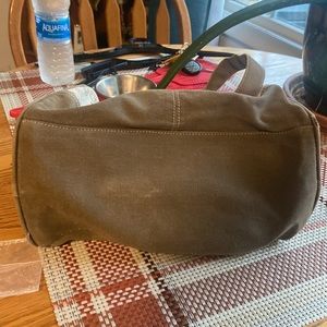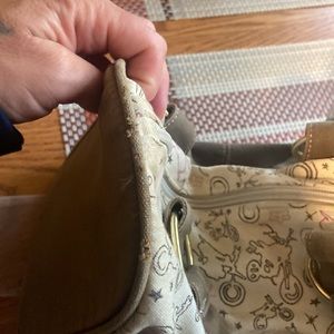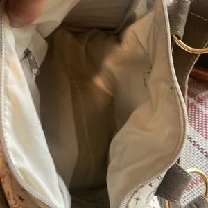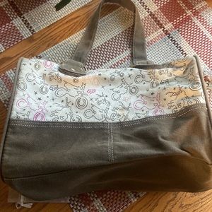 Fox Racing Purse. Please look at all pics. I have two of these purses for sale. This one is more worn and used. The zipper is also broken on this purse. There a few marks on the purse. I also took a pic of a corner where the seam is ripped. I love the logos šļøš¦āļø on this purse. Colors are brown cream pink and purple.