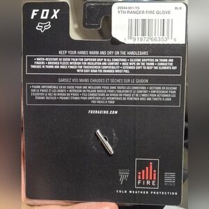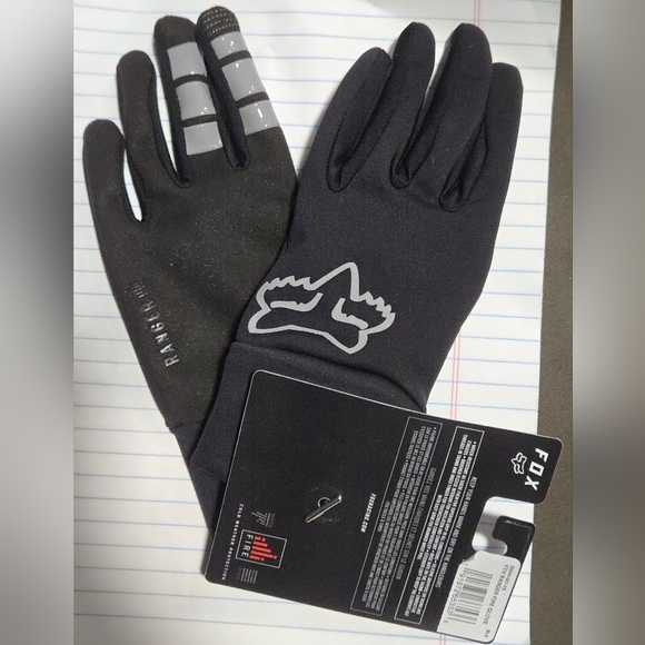 Fox Ranger Fire Gloves Water-resistant gloves with fleece insulation Fleecy on the inside, weather-resistant on the outside, the Ranger Fire Glove is a lightweight glove with a water-resistant AX Suede palm for gripping the bars in all kinds of trail conditions. The fleece insulation keeps your hands nice and warm and combines with the extended cuff to up the chill-busting ante on cooler days. Those looking for low-profile mountain bike gloves that'll keep your hands warm and dry on the handlebars need to look no further. Water-resistant Ax Suede palm for superior grip in all conditions. Silicone grippers on thumb and fingers. Brushed fleece interior for insulation and comfort. Nose wipe on the thumb. Conductive threads in the thumb and index finger for touchscreen compatibility. Extended cuff to keep the elements out with easy grab Fox branded wrist pull. Slip-on glove style.