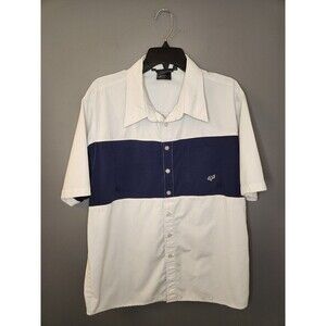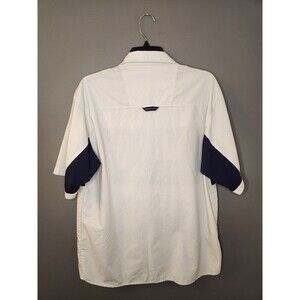 Fox Racing Shirt Men's L White Blue Short Sleeve Button Up Pocket Logo