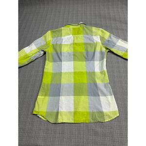 Fox Racing Shirt Womens XL Green Grey Plaid Button Up Long Sleeve Lightweight