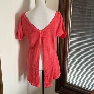 Burnt orange color, thin tee, perfect for summer. Has slit in back to expose the back. In great used condition, no flaws or damage to note.