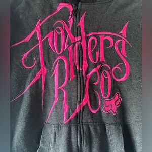 Cozy black zip up fleece with hot pink Fox Riders Co logo. Ideal for warmth and style. Worn only a few times but no longer my style. Size Large