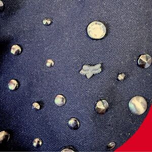 Fox Riders canvas bag with silver and rhinestone studs and small fox emblem. In excellent condition with clean lining. 12”x 11”