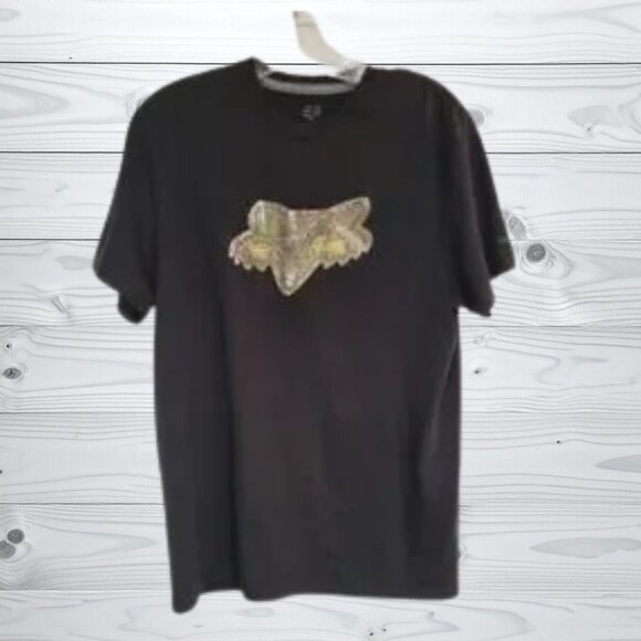 Black tee with camo fox. Size Small.