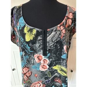Fox Riders Women's Floral Short Sleeve Blouse Top Size XL Moto Streetwear Racing