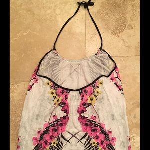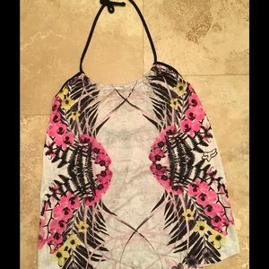 NWOT - perfect condition. White, gray, black, pink, yellow. Does not have a shelf bra. Halter tie is a drawstring type - the look of the shirt changes depending on how it is pulled. 👏🏻 Fox pants are also for sale in my closet. 🚫 No Trades❗️ Make me an offer or request a bundle 🎯