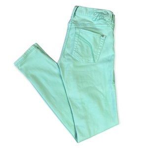 Bright pastel green jeans