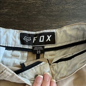 Size 23. Tan. Great condition. Fox racing, motocross, boys, shorts, summer.