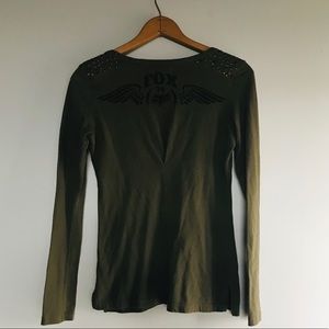 Cute Fox top with details on the shoulders. Cinched back. Size XS