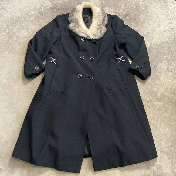Fox Wers Philadelphia Andover Alnorna Coat Womens 12 Black Fur Collar Mid Length