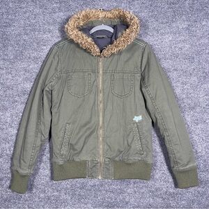 Fox Women’s Junior Large Green Military Style Faux Fur Hooded Jacket