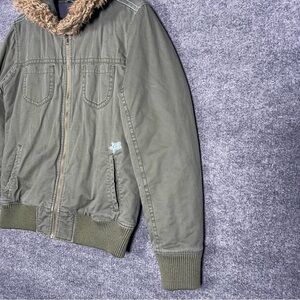 Fox Women’s Junior Large Green Military Style Faux Fur Hooded Jacket 90s Y2K