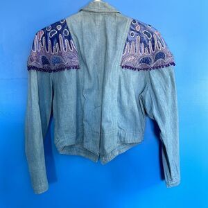 Fox by Yang Size Small Cropped Embellished Denim Jacket for Women