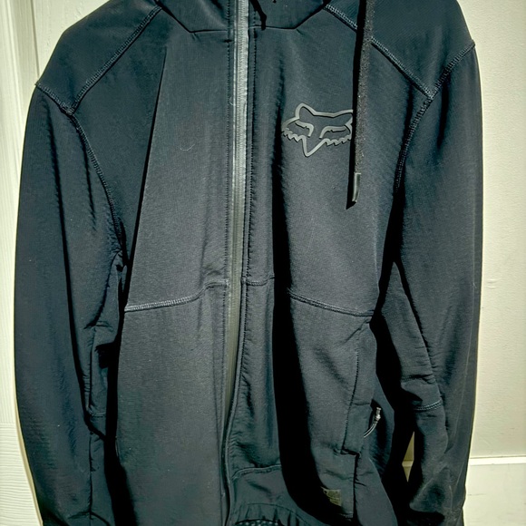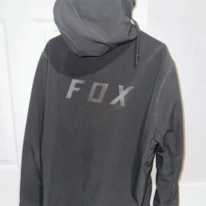 Fox, black hooded jacket very nice, comfortable, has only been worn sub 10 times